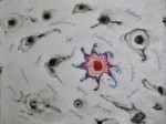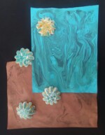 In this remote version of the workshop participants used a variety of techniques and explored various materials to create art. The workshop focused on skinning armatures with thin sheets of abaca and using pulp molding techniques to create 3D work. We learned to build simple deckle molds for pulling sheets of paper. Everyone use professional marbling methods to create images on handmade abaca/kozo paper for a group project to build a Covid-19 quilt. Below is the model for the quilt based on participants’ work and their individual work, as well.